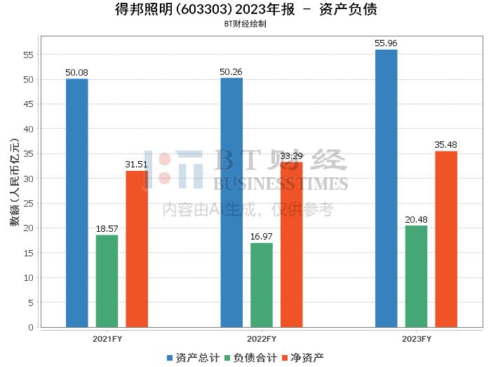 在资产负债方面,得邦照明的总资产由期初的50.26亿元增长至期末的55.96亿元,增长率为11.34%。负债总额也从期初的16.97亿元增至20.48亿元,资产负债率从33.76%上升至36.6%,显示出公司的财务杠杆有所上升。净资产从33.29亿元增长至35.48亿元,反映了公司净值的增加。