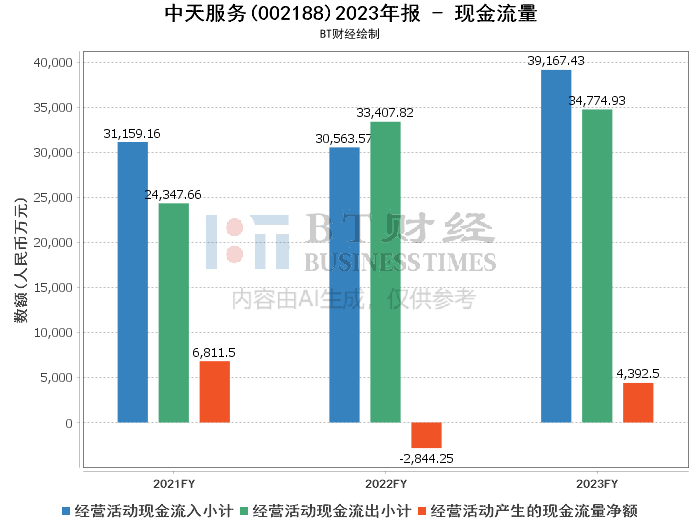 现金流量方面,中天服务在本报告期内经营活动产生的现金流量净额为4392.5万元,较上年同期的-2844.25万元有了显著的改善,增长率为254.43%。经营活动现金流入小计为3.92亿元,而现金流出小计为3.48亿元。