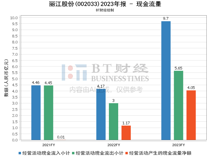 现金流量方面,丽江股份的经营活动产生的现金流量净额为4.05亿元,较上年同期的1.17亿元大幅增长,增幅为247.70%。经营活动产生的现金流入总计为9.7亿元,而现金流出总计为5.65亿元,现金流量的增加反映出公司经营活动的良好状况和现金收入的增加。