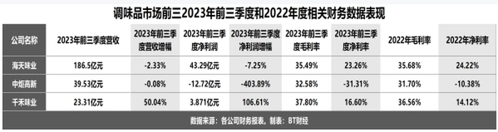 因为千禾味业2023年年报要到4月30日才发布,海天味业和中炬高新同样未发布2023年年报,2023年三季报和2022年年报更具参考性。