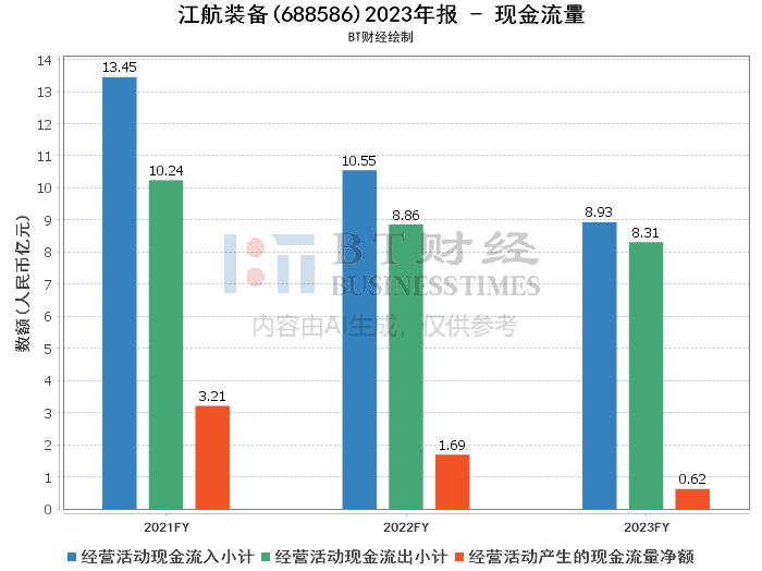 综上所述,江航装备在2023年取得了一定的业绩增长,特别是在航空业务领域,公司通过积极参与新研成品配套研制和在多个项目中竞标成功,巩固了公司的专业地位。然而,特种制冷业务受到国家行业政策变化和市场环境的影响,收入规模未达预期,同比下降33.46%,对公司整体盈利能力造成了一定的影响。此外,公司的研发投入增加,虽然对长期竞争力有积极影响,但短期内对净利润产生了压力。现金流量的减少也需要引起投资者的注意。