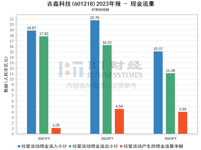 现金流量方面,吉鑫科技的经营活动产生的现金流量净额为3.99亿元,较上年同期的4.54亿元有所减少。经营活动产生的现金流入总计为15.07亿元,而现金流出总计为11.08亿元。公司通过购买理财产品来提高资金效率,这在一定程度上影响了现金流量净额。