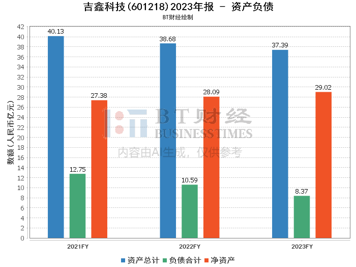 从资产负债方面来看,吉鑫科技2023年的总资产为37.39亿元,较期初的38.68亿元有所减少。负债总额从期初的10.59亿元减少至8.37亿元,净资产则从28.09亿元增加到29.02亿元。资产负债率由期初的27.38%降低至22.38%,显示公司的财务结构得到了一定程度的优化。