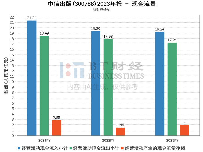 现金流量方面,中信出版的经营活动产生的现金流量净额实现了从上年同期的1.46亿元增长至2亿元的良好表现,显示出公司经营活动的现金流入能力增强。经营活动产生的现金流入小计为19.24亿元,而现金流出小计为17.24亿元,两者的差额正是现金流量净额的来源。