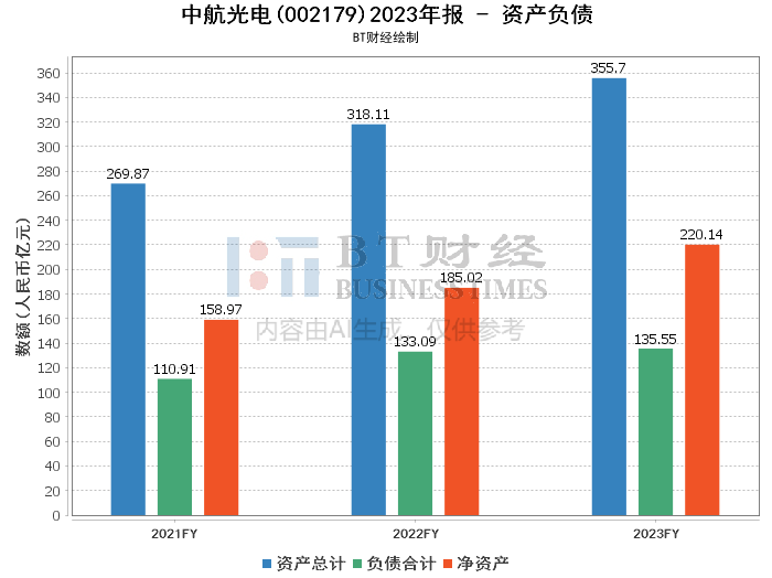 资产负债方面,中航光电的总资产从年初的318.3亿元增长至年末的355.7亿元,增长了11.75%。负债总额略有增加,从年初的133.27亿元增至135.55亿元。净资产则从年初的185.03亿元增长至220.14亿元,资产负债率从41.87%下降至38.11%,显示公司的财务结构进一步优化。