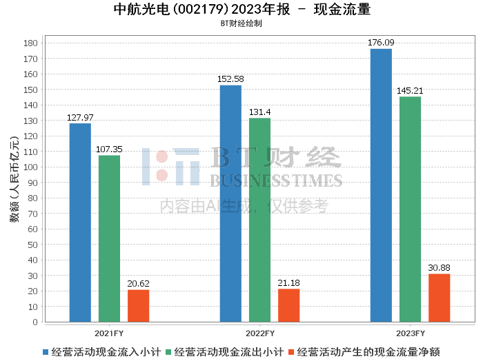 现金流量方面,中航光电的经营活动产生的现金流量净额为30.88亿元,同比大幅增长45.79%。经营活动产生的现金流入为176.09亿元,而现金流出为145.21亿元。这表明公司的经营活动保持了良好的现金流入状态,财务健康状况良好。