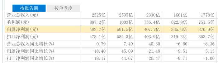 中国神华以约7360亿元的总市值稳居行业市值第一。2023年前三季度中国神华营收2525亿元,同比增长0.79%,但归母净利润由上一年同期的591.5亿元下滑至482.7亿元,下滑幅度为18.4%。
