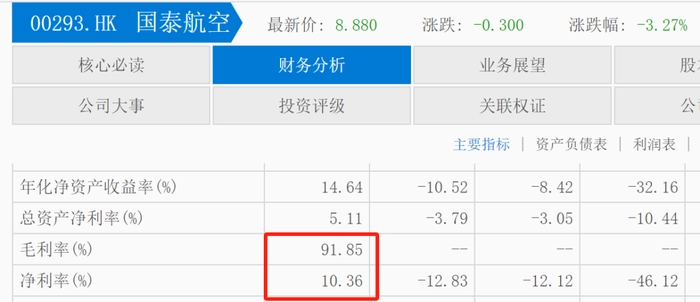 众所周知,茅台的毛利率是很多行业的天花板,毛利率能高过茅台的少之又少,而国泰航空算是不多中的一家。