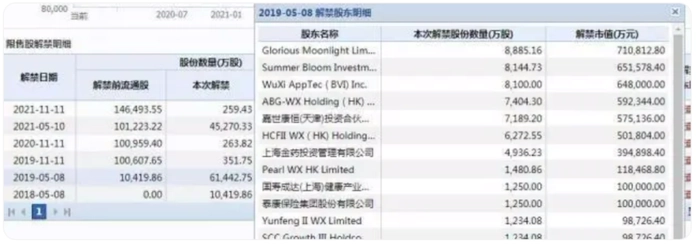 2019年5月8日,药明康德股票刚过解禁期,就首次公开发行限售股到期解禁,解禁股份共计6.14亿股,占上市公司总股本的52.51%。