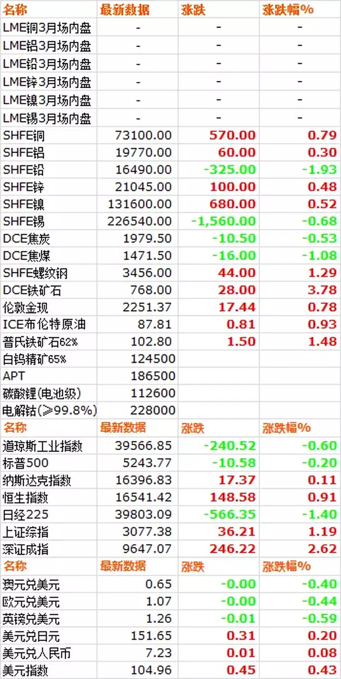 沪铜期货盘面:目前,沪铜期货价格向上突破64000-70500元/吨区间上沿。4月1日,cu2405收盘价73100元/吨,上涨0.79%。持仓量TOP20期货公司在沪铜全部合约净持空头头寸1828手,未明显变化。
