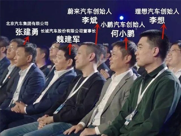 发布会现场雷军邀请了一众汽车大佬,其中有蔚来汽车的李斌,理想汽车的李想、小鹏汽车的何小鹏、长城汽车董事长魏建军、北京汽车董事长张建勇等,有新能源车企也有传统车企。