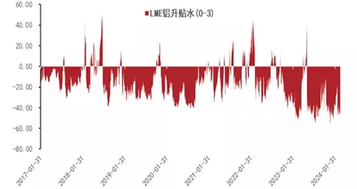 图6:伦铝Cash/3M贴水49.51美元/吨反映现货资源维持宽松