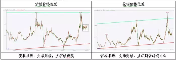 图4:沪铝和伦铝分别处在长期价格区间中部偏高和中部偏低位置