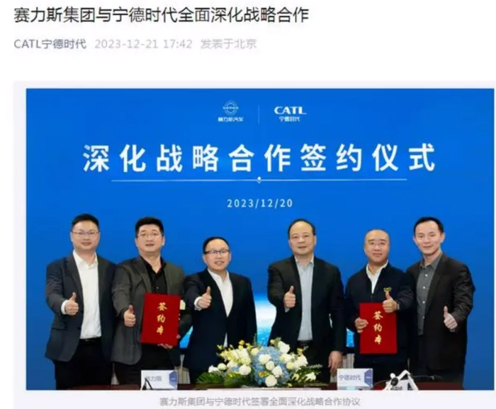 2023年年底,汽车圈一则重磅消息传出,宁德时代和华为联手了。据宁德时代官微2023年12月21日文章透露,赛力斯集团与宁德时代全面深化战略合作,而众所周知赛力斯和华为的合作关系,双方的合作不仅局限于技术层面,还扩展至生态上的互相融合,共同推动智能终端领域合作,打造高性能、智能化移动出行解决方案。问界就是华为和赛力斯打造的品牌,汽车圈内习惯称之为华为问界。