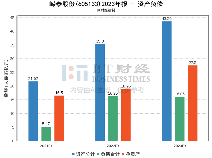 在资产负债方面,嵘泰股份2023年末总资产达到43.56亿元,较上年末增长23.39%。负债总额为16.06亿元,较上年末略有下降。净资产因本期净利润的增加而增加,资产负债率从上年末的46.33%下降至36.86%,显示公司财务结构正在逐步优化。