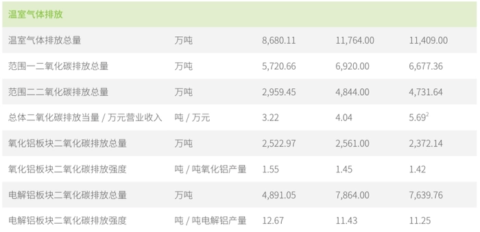作为高耗能行业,中国铝业的气体排放和能源消耗指标在2023年都出现了部分数据抬头的趋势。