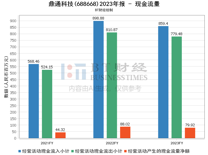 从现金流量表来看,鼎通科技在2023年度经营活动产生的现金流量净额为79.92百万元,较上年同期的88.02百万元略有下降,降幅为9.20%。这表明公司的现金流入和流出在报告期内保持了一定的稳定性,但经营活动产生的现金流量净额仍然有所下滑。