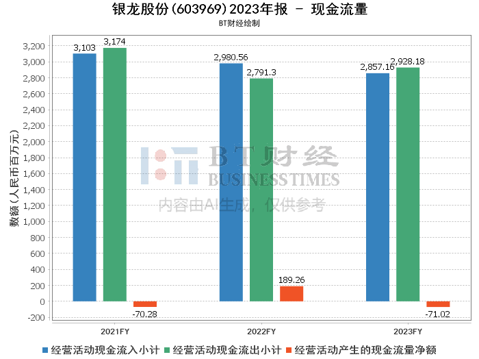 在现金流量方面,银龙股份在2023年的经营活动产生的现金流量净额为负,为-7102.16万元,而上年同期为1.90亿元。这一变化主要是由于本期购买原材料的支出较上年同期增加所致。尽管如此,公司的投资活动产生的现金流量净额和筹资活动产生的现金流量净额均为正,显示出公司在投资和筹资方面的良好表现。