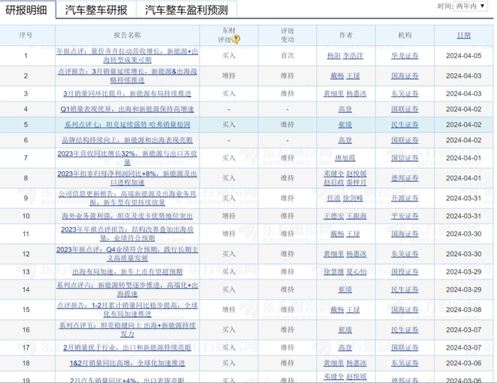 东吴证券则表示“长城汽车3月销量同环比提升,新能源布局持续推进”同样给出买入评级。并预测长城汽车2024年至2026年归母净利润为89亿元、117亿元和151亿元,这甚至高于长城汽车自己制定的目标。