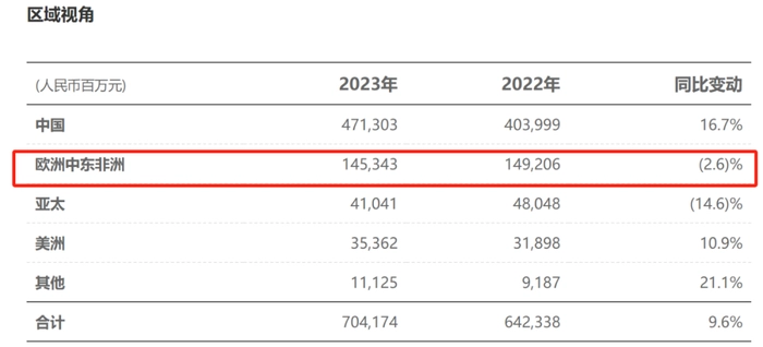 通过华为2023年主要财务数据可以发现,华为中国市场的基本盘基本稳定,全球其他地区出现高增长的有利局面,但是需要注意的是,欧洲市场目前仍然乏力。随着华为产品更名可以看出开始重视欧洲市场,这是一次新的尝试,毕竟欧洲市场是华为仅次于中国市场的第二大市场,营收占比高达21%。