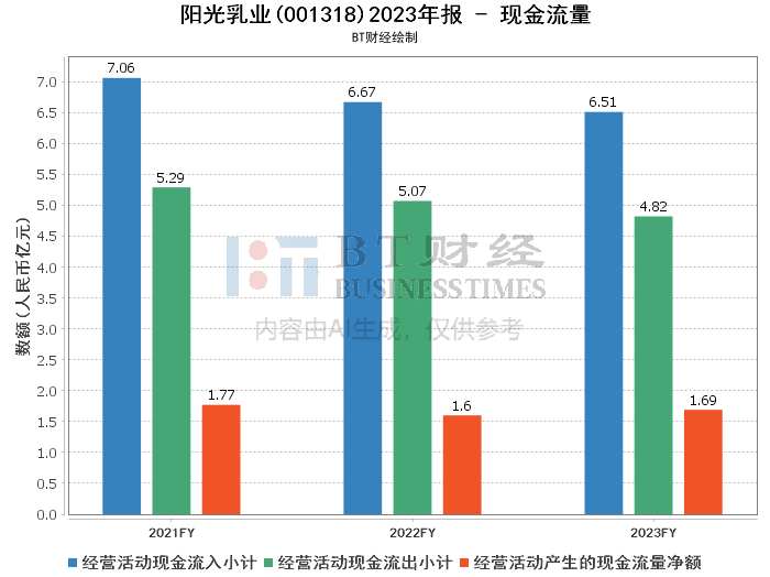 在现金流量方面,阳光乳业经营活动产生的现金流量净额为1.69亿元,同比增长5.30%,反映出公司经营活动现金流状况良好,资金回笼速度加快。同时,经营活动现金流入和流出均有所减少,表明公司在报告期内对现金流的管理更加高效。