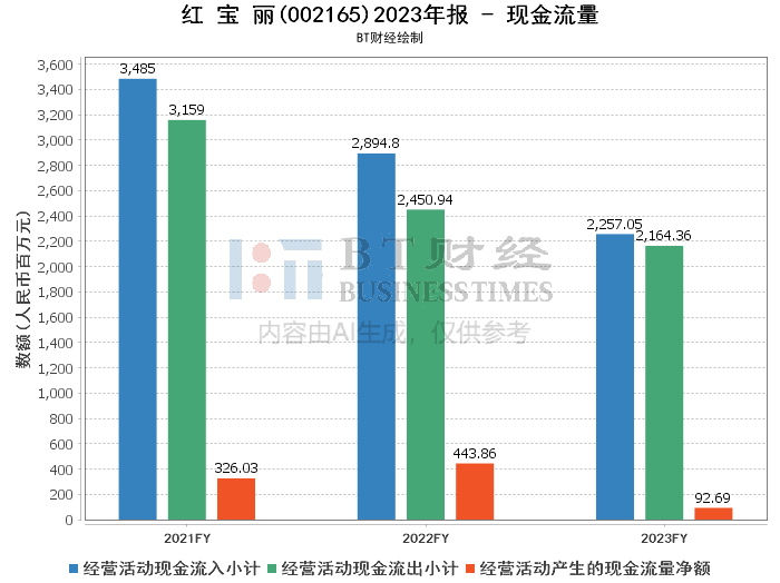 在现金流量方面,红宝丽2023年的经营活动产生的现金流量净额为92.69百万元,尽管较上年同期的4.44亿元有所减少,但考虑到公司在报告期内进行的泰兴基地环氧丙烷综合技改项目等因素,这一表现仍属稳健。