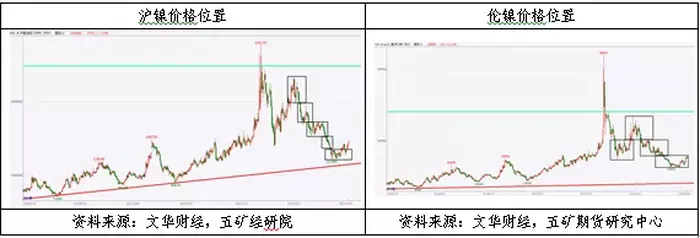 图4:沪镍和伦镍价格分别处在长期价格区间低位和中部偏低位置