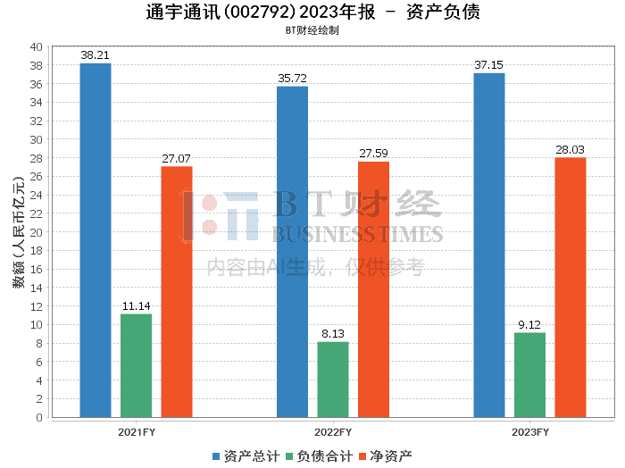 从财务角度分析,通宇通讯2023年的总资产达到了37.15亿元,相比期初的35.72亿元增长了3.99%。负债总额从期初的8.13亿元增加到期末的9.12亿元,资产负债率由22.77%上升至24.54%,显示公司财务结构有所变动,负债水平略有上升。