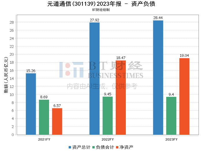 在资产方面,元道通信的总资产期末余额为28.44亿元,较期初略有增长,增幅为1.87%。负债总额为9.4亿元,与期初相比微降。尽管资产负债率从期初的33.84%下降至期末的33.06%,但净资产并未出现大幅增长,仅从期初的null元增至期末的19.04亿元,增幅有限。