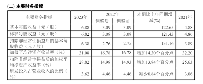 资产负债指标亦显示,公司存货值在2023年末升至104.43亿元,同比大增71.66%,占总资产比例为22.64%。据公司说明,这主要是因为随着销售规模扩大,为满足需求,正常经营周转所需要的库存增加导致。