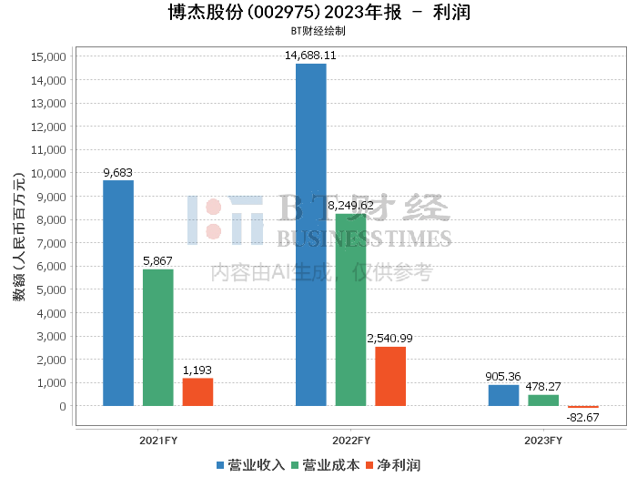 珠海博杰电子股份有限公司(股票代码:002975),作为一家专注于智能制造领域的高新技术企业,长期为下游万物互联相关产业提供工业自动化、智能化设备及系统解决方案。其业务覆盖设备的研发、生产、销售及相关技术服务,旨在帮助客户提高生产效率和产品良品率。公司的主要客户包括苹果、META、微软等全球科技巨头,以及比亚迪、鸿海集团等知名电子产品制造商。然而,根据博杰股份2023年的财报数据,公司的经营状况并不乐观。