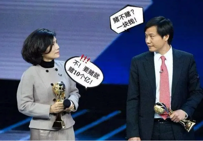 2013年12月12日,在央视中国经济年度人物颁奖盛典上,董明珠与雷军就发展模式产生了不同分歧。对于雷军五年内营收规模超过格力的看法,董明珠认为小米没有核心技术,根本不可能做到,为此两人进行了国内最知名的“十亿”赌约。