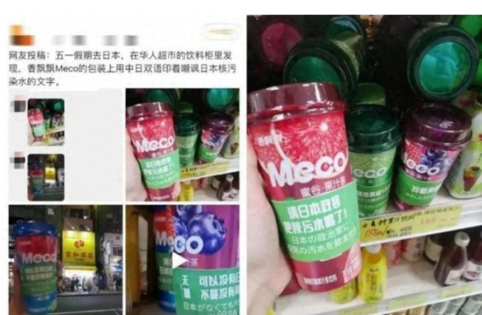 据《21世纪经济报道》,香飘飘在日商店里销售的香飘飘旗下Meco果汁茶的杯套上印有讽刺日本排放核污水事件的文字,内容包括“无耻”“0.1%的土地污染了70%的海洋”“可以没有日本不能没有海洋”“海洋不是日本的下水道”等引发网友热议。