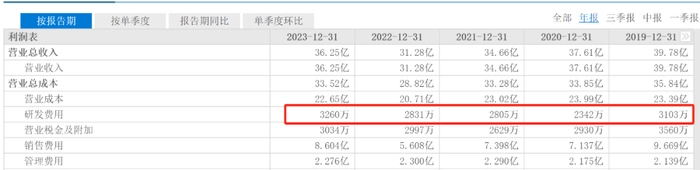 而与之相对的研发费用就低得可怜。2023年香飘飘研发费用为3260万元,占总营收的0.9%,甚至比2022年的0.91%占比还有所下滑。此前营收最高的2019年,香飘飘的研发占比也不足1%。过低的研发投入,造就了香飘飘十余年如一日的不变口味,以及一成不变的包装。