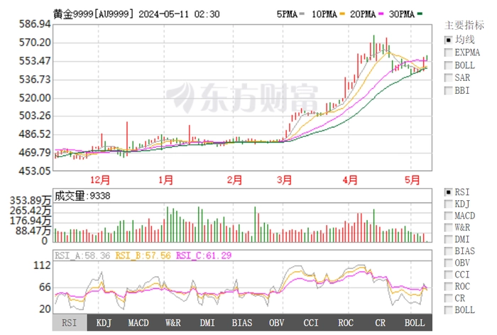 缓慢上行的黄金价格在2024年一季度突然按下加速键,海内外金价双双起飞,不断刷新历史纪录,沪金价格在4月中旬摸高到近580元/克。