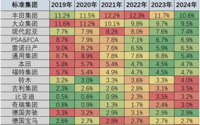 接着,吉利在2024年第一季度,以3.5%的全球市场占有率,反超比亚迪成为全球第十大车企,在2023年3.1%的全球市场占有率上大幅提升,其中中国市场份额8%,欧洲市场份额3%。数据显示,2024年一季度吉利控股集团销量为73.84万辆,同比增长44%。比亚迪则由2023年的3.5%全球市场占有率下滑至3.2%。此外前20的汽车品牌中,奇瑞集团、长安集团以及上汽集团分别以3.0%、2.6%和1.7%的份额位列其中,在众多入围中国汽车品牌中,吉利集团位居第一。