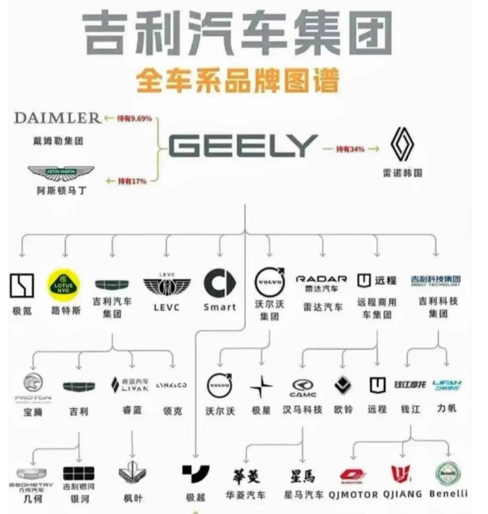 然而李书福的“资本”之路远未结束,随时可能会上市的还有一直有传言要上市的远程汽车和曹操出行。除了自身拥有的9家上市公司之外,李书福还入股了奔驰母公司戴姆勒、阿斯顿马丁、雷诺韩国等公司,以其持股比例来看,不是实控人就是大股东,其中持有雷诺集团34%的股权,持有戴姆勒集团和埃斯顿马丁9.6%和17%的股权,收购了英国伦敦出租车公司、美国飞行汽车公司Terrafugia,目前李书福旗下的子品牌,已经约20个左右,同样为众多国内汽车圈大佬中拥有品牌最多的一个。