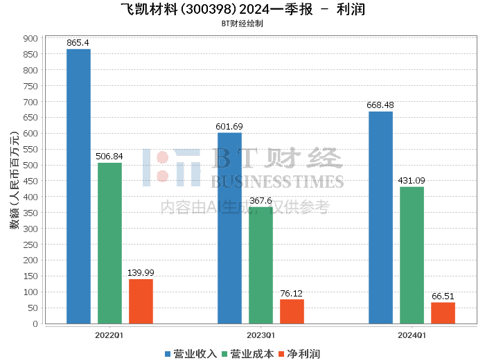上海飞凯材料科技股份有限公司(股票代码:300398),是一家专注于高性能材料研发、生产和销售的高科技企业。公司主要产品涵盖光电材料、电子化学品和功能性材料等领域,广泛应用于光纤通信、显示面板、半导体等高科技产业。2024年第一季度,飞凯材料发布了最新的财报数据,以下是对其财务数据的详细分析。