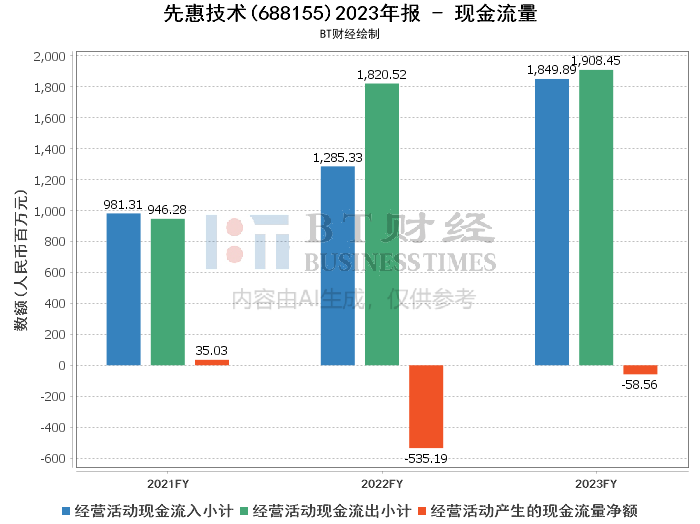 现金流量方面,先惠技术的经营活动产生的现金流量净额为-58.56百万元,较上年的-5.35亿元有了大幅改善。投资活动产生的现金流量净额为-5.65亿元,同比减少,主要原因是公司在募投项目上的投入增加。筹资活动产生的现金流量净额为5.36亿元,同比减少47.80%,主要是由于公司偿还了部分银行借款。总体来看,公司在经营活动现金流方面有所改善,但在投资和筹资活动上仍需进一步优化。