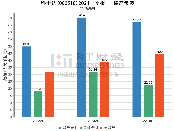 从资产负债数据来看,科士达在2024年一季度末的总资产为67.22亿元,较上年度末的68.83亿元减少了2.33%。这一变化主要是由于交易性金融资产和应收款项融资的减少所致,分别下降了45.82%和47.58%。此外,短期借款也大幅减少了57.35%,这表明公司在本期内减少了融资活动。尽管总资产有所减少,但归属于上市公司股东的所有者权益增加了3.50%,达到43.69亿元,显示出公司在股东权益方面的稳健增长。资产负债率从上年度末的37.38%下降至33.69%,反映出公司在降低财务杠杆方面取得了一定成效。