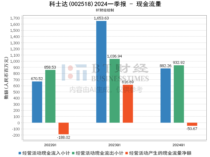 总结来看,科士达在2024年一季度面临一定的市场挑战,特别是在营业收入和净利润方面出现了较大幅度的下降。然而,公司在毛利率和股东权益方面表现出色,显示出其在成本控制和股东回报方面的能力。尽管经营活动现金流出现负值,但投资和筹资活动的现金流有所改善。未来,科士达需要继续关注市场需求变化,加强销售回款管理,同时保持在研发方面的投入,以确保长期竞争力。