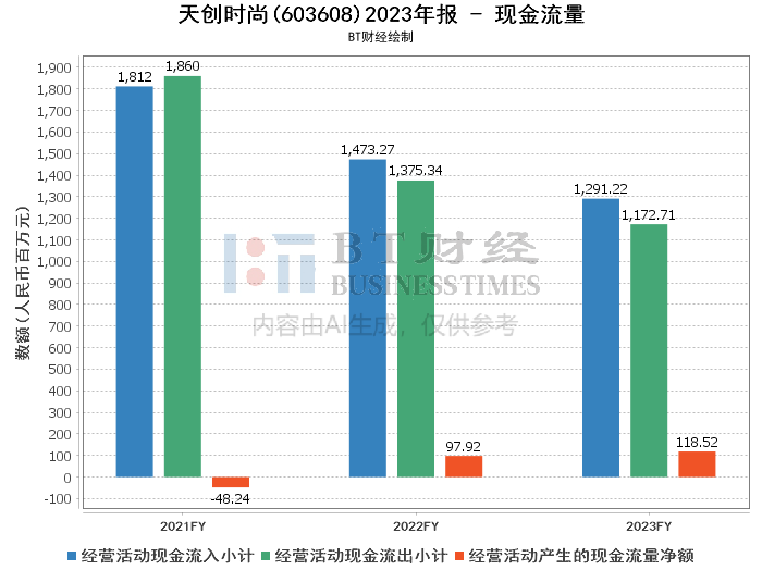 再来看现金流量数据,天创时尚在报告期内的经营活动产生的现金流量净额为1.19亿元,同比增长了约21.03%,这表明公司在资金回笼和流动性管理方面取得了积极成果。特别是在鞋履服饰业务板块,通过人员结构优化和严控费用支出等措施,有效提升了现金流的生成能力。此外,公司在投资活动和筹资活动方面的现金流量也有所变动,反映出公司在资本运作和融资策略上的灵活性和前瞻性。