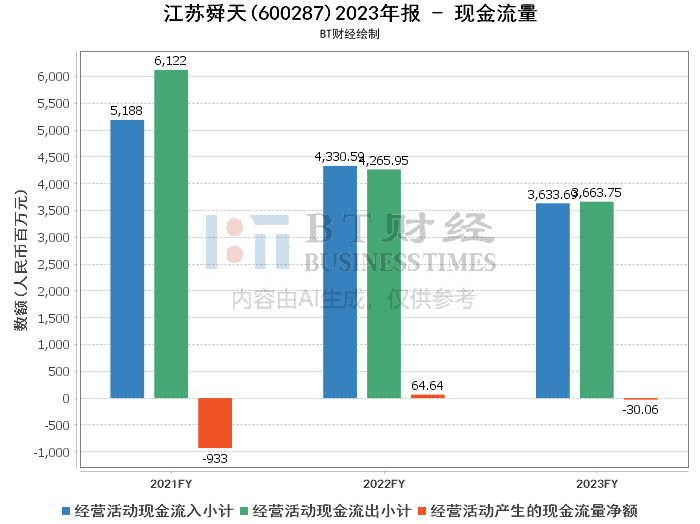总结来说,江苏舜天在2023年面临的经营环境充满挑战,但公司通过深耕主业、加速数字化转型升级,并在财务管理上采取有效措施,不仅巩固了稳中向好的业务基础,还提升了市场竞争力。尽管现金流量净额的下降对公司的短期财务状况构成了压力,但从利润增长和资产负债率的改善来看,江苏舜天展现出了较强的韧性和长期发展的潜力。展望未来,公司仍需持续关注外部环境变化,进一步优化业务结构和财务管理,以实现可持续高质量发展。
