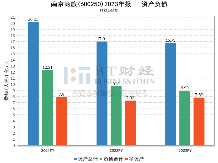 在资产负债方面,南京商旅的总资产由2022年的17.01亿元略微下降至16.75亿元,反映出公司在优化资产结构。负债合计从9.7亿元减少至8.93亿元,资产负债率从56.99%降至53.32%,显示出公司降低了财务杠杆,增强了财务稳健性。