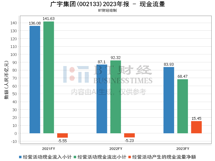 现金流量方面,广宇集团2023年经营活动产生的现金流量净额为1.55亿元,相比2022年的-5.23亿元大幅改善,表明公司经营活动的现金流入有显著增加,经营效率得到提升。这一变化对于改善公司的流动性状况,增强持续经营能力具有重要意义。