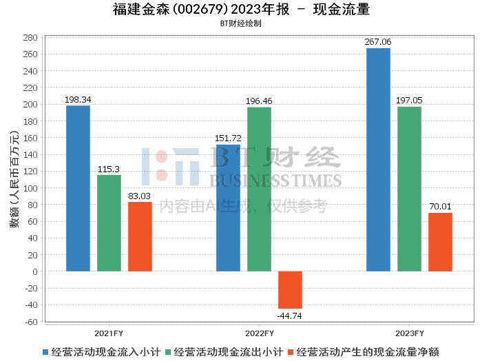 总结来说,福建金森2023年的财务报告显示,尽管面临市场和行业的挑战,公司总体保持了稳定的财务状况。资产规模的增长和现金流量的改善,为公司的持续发展提供了坚实的基础。然而,盈利能力的下降和负债水平的上升,也提示公司需要进一步优化管理和提高效率,以应对未来可能的风险和挑战。
