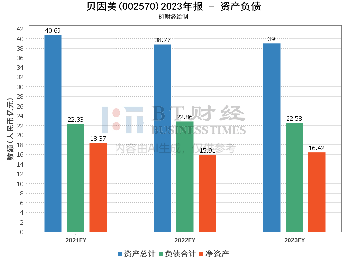 在资产负债方面,贝因美2023年末的总资产达到了39亿元,较期初的38.77亿元略有增长,显示出公司资产规模的稳步扩张。负债合计为22.58亿元,相比期初的22.86亿元有所下降,这表明公司在优化财务结构,减少负债压力方面取得了一定成效。资产负债率从期初的58.96%降至期末的57.9%,反映出公司财务健康状况有所改善。