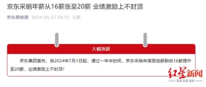 京东采销岗位年固定薪酬此前一直是16薪,已经羡煞全行业。5月27日京东宣布,自2024年7月1日起,通过一年半时间,京东采销年度固定薪酬提升至20薪,也就是说工作一年能领到正常一年零八个月的薪水,且业绩奖励上不封顶。