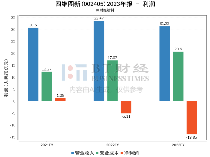 利润方面,四维图新2023年的营业收入为31.22亿元,同比下降6.72%,净利润为-13.14亿元,较2022年的-3.36亿元大幅下降,扣非净利润亦大幅下降至-14.28亿元。这一变化主要受到汽车供应链相关产品单价持续下降的影响,以及市场竞争加剧导致的成本上升。