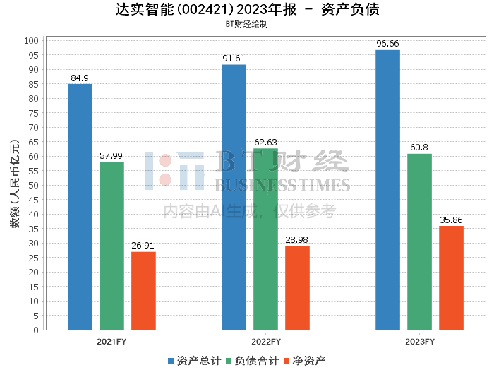 在资产负债方面,达实智能2023年末的总资产为96.66亿元,较期初的91.61亿元增长了5.51%。负债合计从期初的62.63亿元减少到期末的60.8亿元,显示出公司在减少负债方面取得了一定的成效。资产负债率从期初的68.36%降低到期末的62.9%,反映出公司的财务结构有所改善。